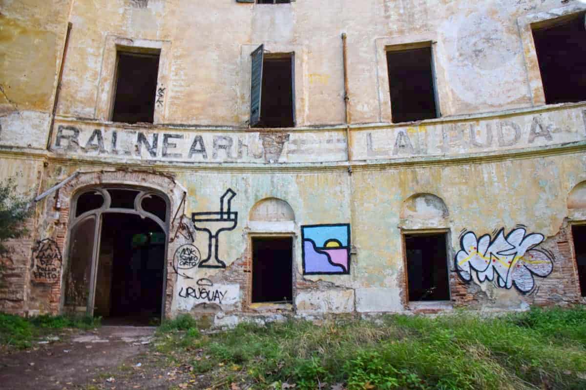 La Puda de Montserrat is an abandoned 19th-century spa located near the Llobregat River at the foot of Montserrat mountain. Once a fashionable retreat known for its sulfurous thermal baths, the building now stands in ruins, lending a haunting atmosphere to the dramatic natural landscape.